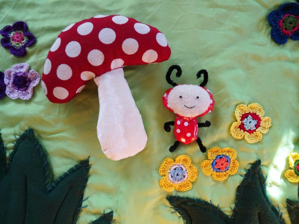 Le tapis narratif permet une exploration sensorielle, visuelle et tactile, qui complète l’écoute de l’histoire ; il satisfait l’envie de manipuler et toucher, stimule le jeune enfant dans son entrée dans le langage, tout en l’amenant à la découverte du livre.