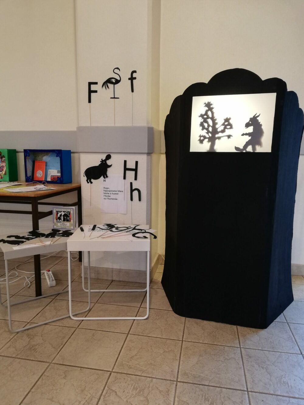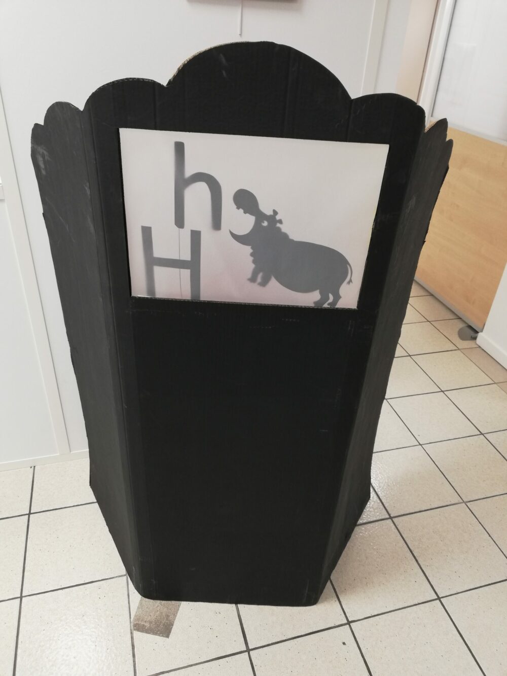 Ce castelet, réalisé en carton et calque, permet des animations en théâtre d’ombres à imaginer avec les enfants.